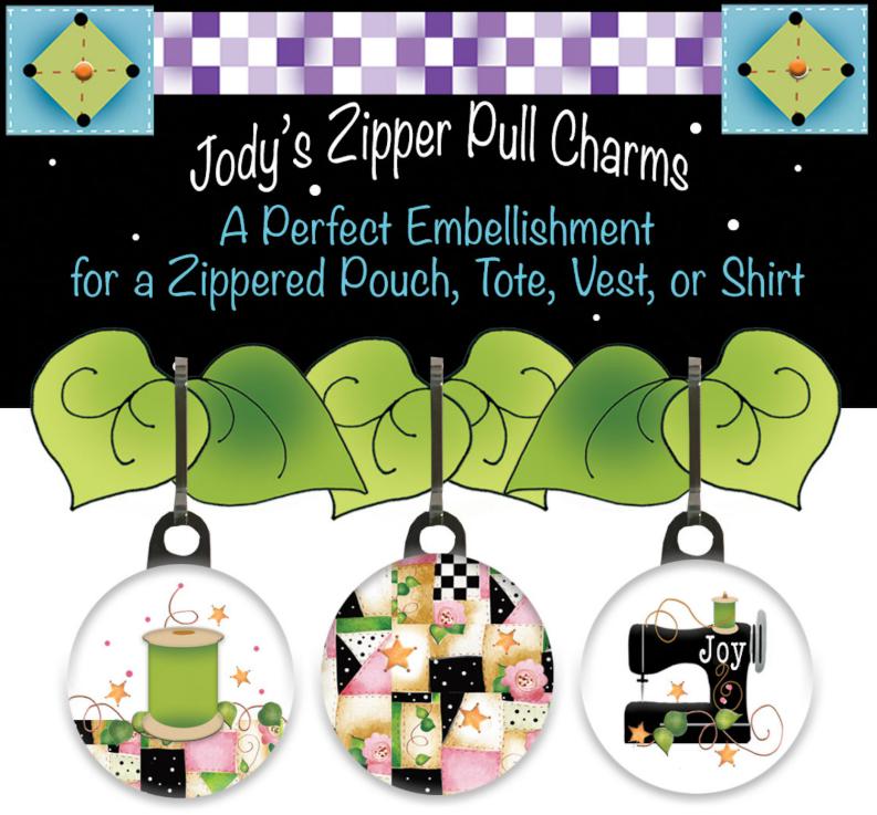 Jody's Zipper Pull Charms, 3 pack, by Jody Houghton Designs.